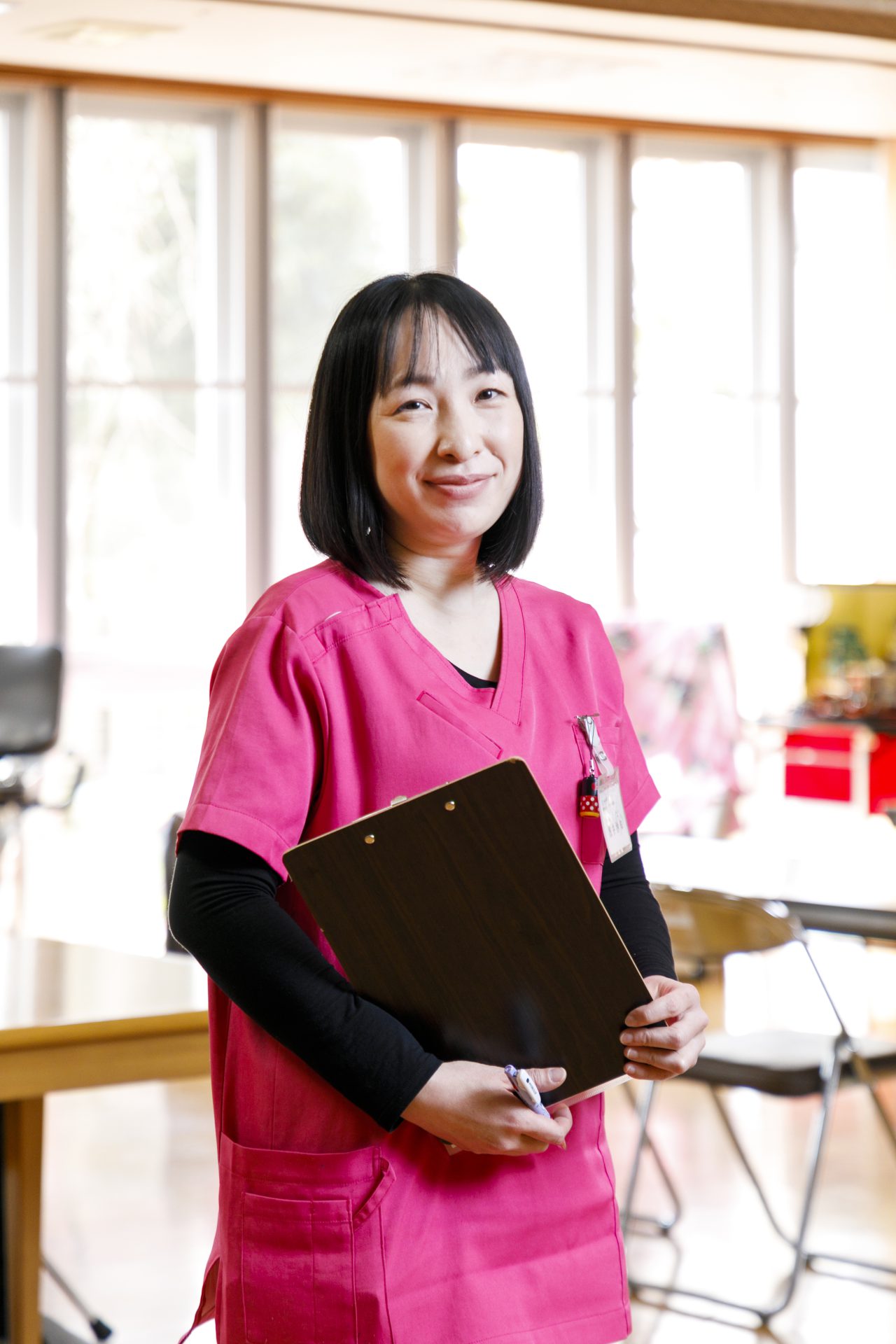 ご利用者様の食事の管理はもちろん、パソコン作業が得意だったため、広報誌や研修用スライドの作成にも取り組み、業務の幅を広げるうちに、他の職種のスタッフとも自然と関わる機会が増え、仕事のしやすい環境づくりにも貢献できるようになりました。