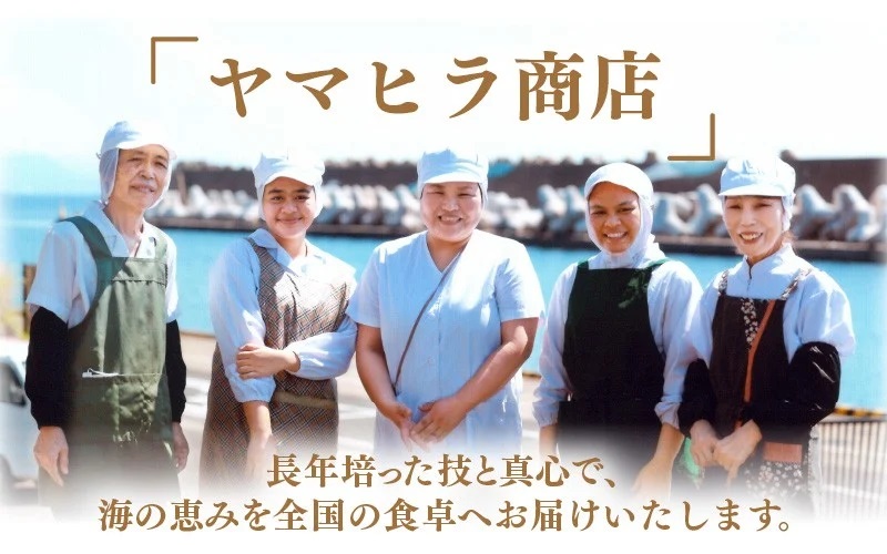 ヤマヒラ商店株式会社では、水産物の加工をすべて手作業で行っております。